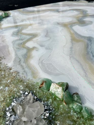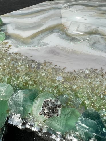 Crystals: Clear Quartz Points, Emerald Green Calcite, and Fluorite
